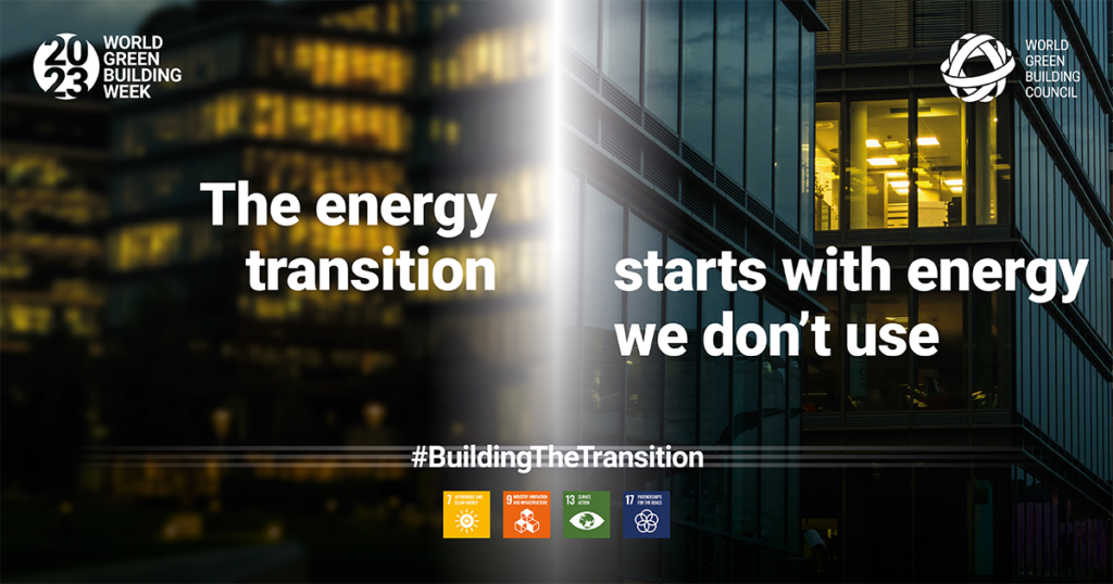 Join us at World Green Building Week from 11–15 September 2023, contact your national Green Building Council to find out about local events and more, and join the social media campaign through @WorldGBC, #BuildingTheTransition and #WGBW23.